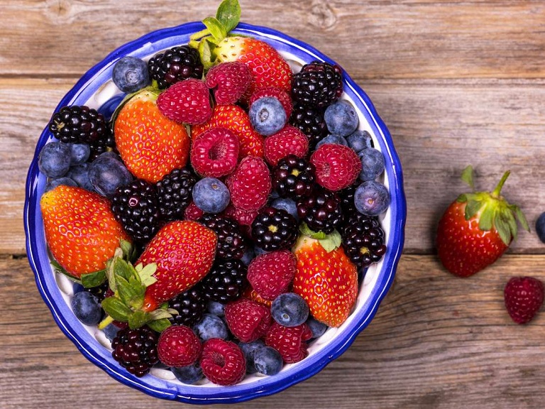 Quả mọng như dâu tây, việt quất, mâm xôi không chỉ là loại quả bổ dưỡng tốt cho sức khỏe mà các loại quả này có nhiều thành phần chống oxy hóa, ngăn ngừa hình thành gốc tự do. Vì thế giúp bảo vệ swucs khỏe và phòng chống ung thư hiệu quả.
