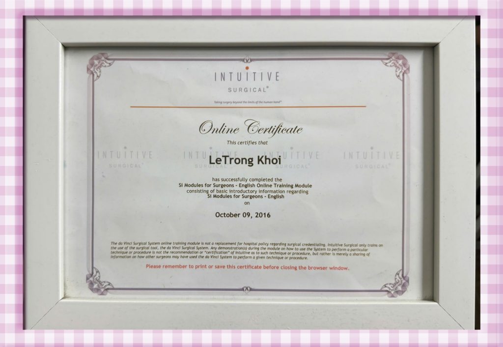 - Chứng chỉ phẫu thuật nội soi nâng cao