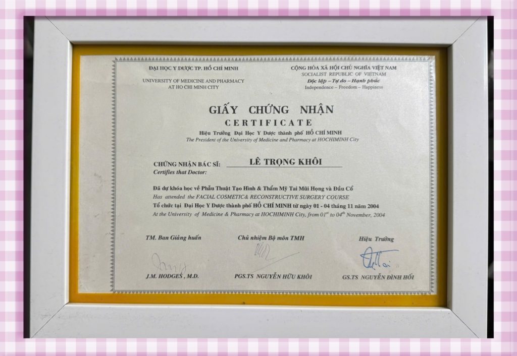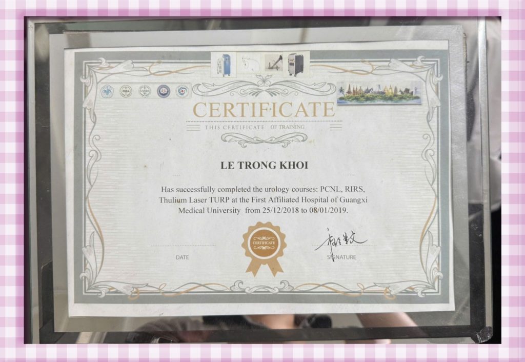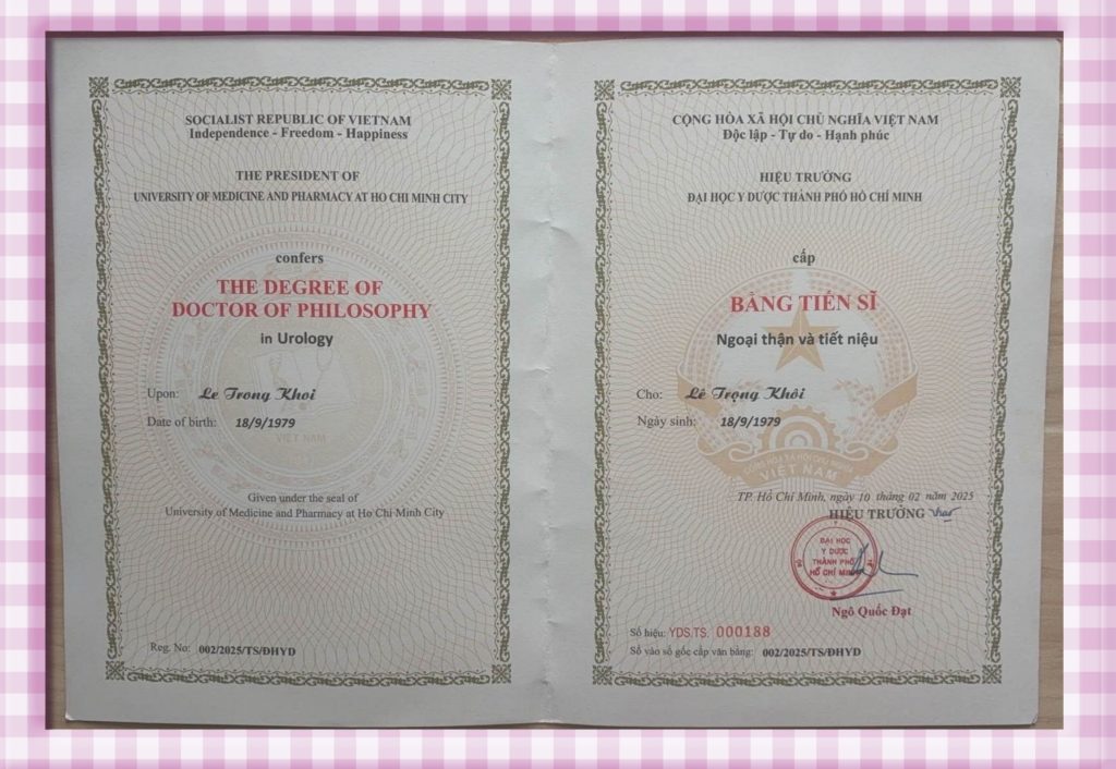 CHỨNG NHẬN CHUYÊN MÔN TIẾN SĨ BÁC SĨ LÊ TRỌNG KHÔI